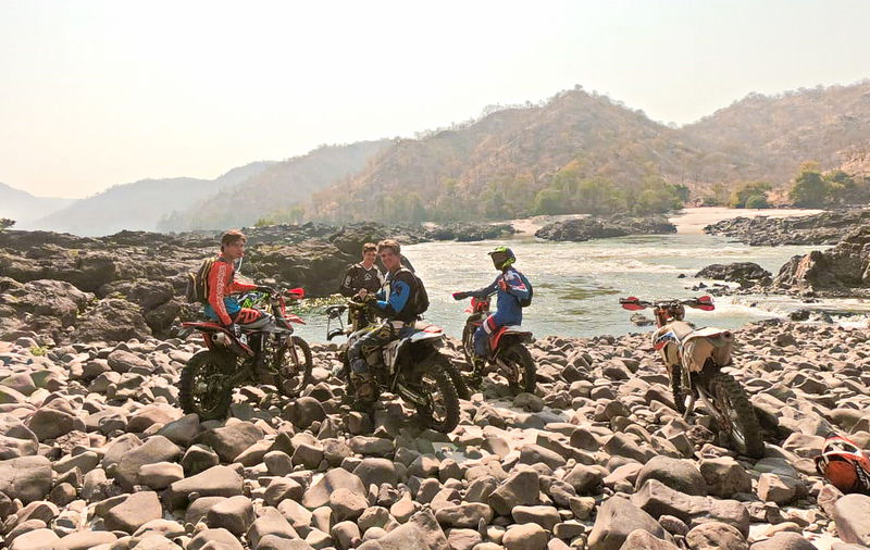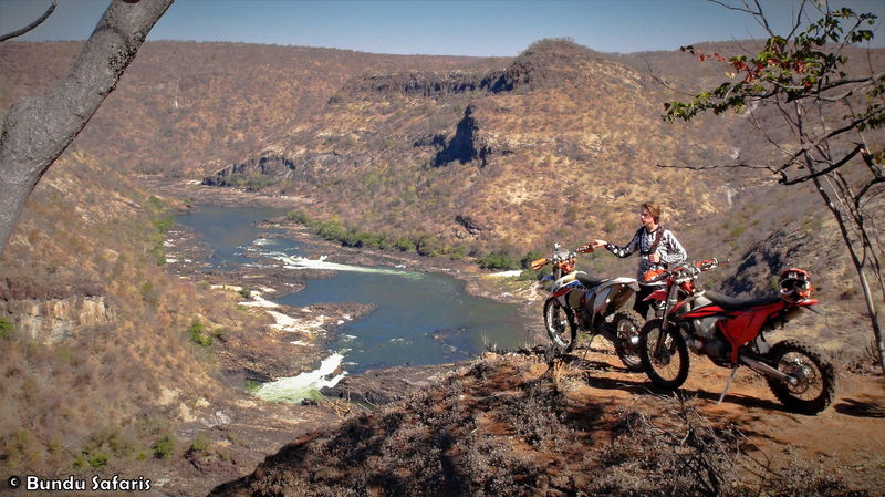 From Lilayi Lodge, we ride our motorcycles through beautiful mountain scenery, descending into the Zambezi River Valley.